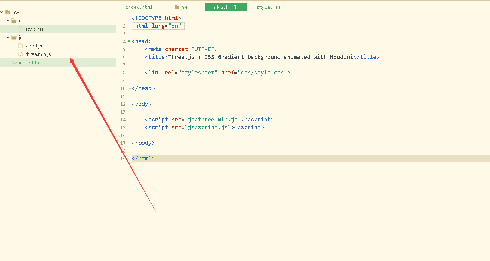 <html lang="en"><head><meta charset="UTF-8"><title>Three.js + CSS Gradient background animated with Houdini</title><link rel="stylesheet" href="css/style.css"></head><body><script src='js/three.min.js'></script><script src="js/script.js"></script></body></html>