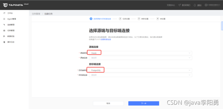 根据刚才建好的连接,选定源端与目标端。
