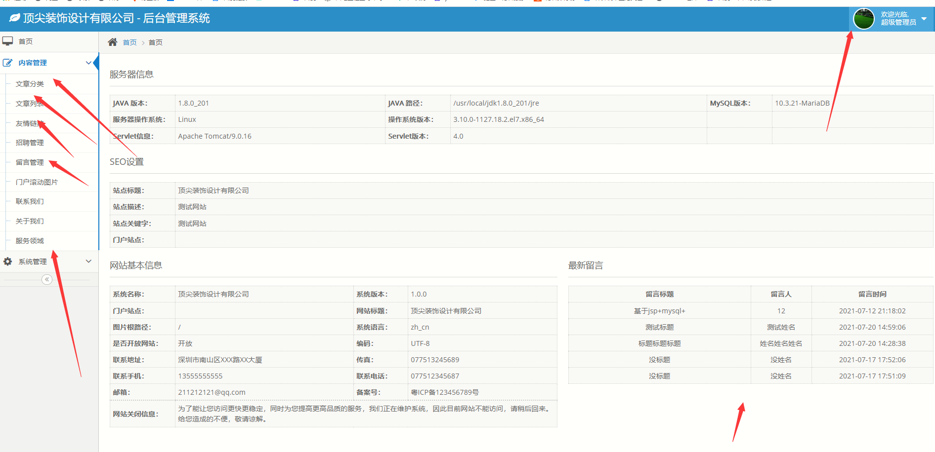 管理员角色功能:管理员登录,文章分类管理,文章列表管理,友情链接管理,招聘管理,留言管理,滚动图片管理,联系我们,关于我们,网站管理员管理,日志管理等功能。