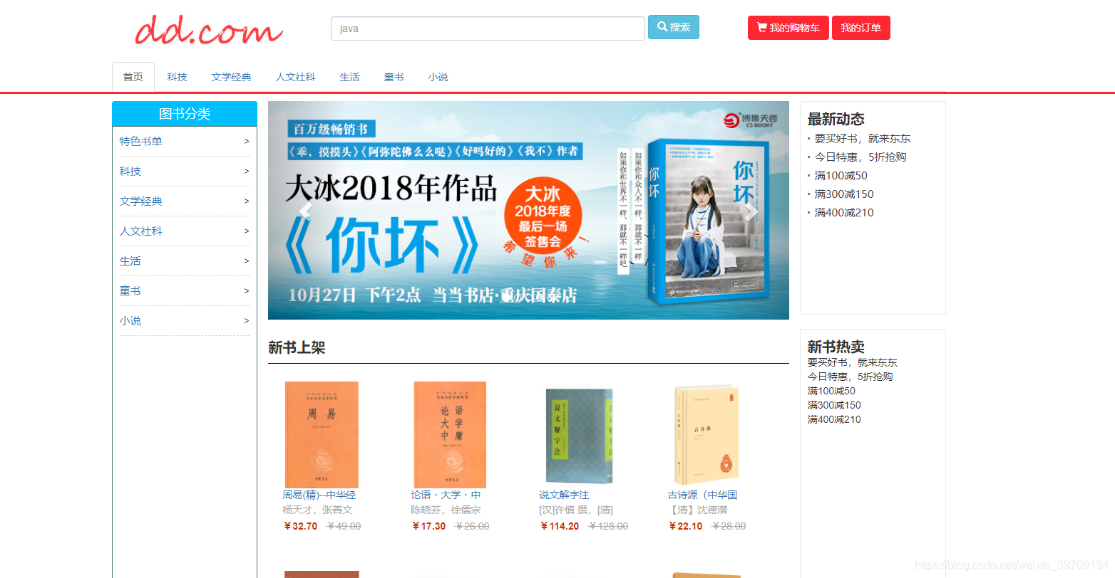主要实现了书城网站的浏览、加入购物车操作、订单操作、支付操作、分类查看、搜索、以及后台上传图书信息以及订单管理和一些基本操作功能