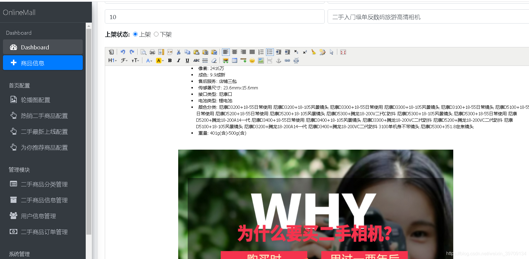 后台管理员主要对前端客户端一些用户的管理、商品的管理、轮播图管理、商品分类管理以及订单信息和订单流程管理