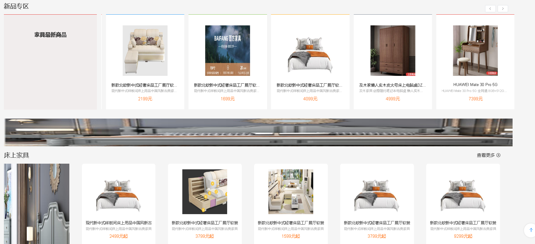 - 管理员: 管理员可以对后台数据进行管理、拥有最高权限、具体权限有登录后进行首页轮播图的配置管理、商品的配置、新品家具商城的配置管理、、家具商城分类管理配置、家具商城详情商品管理、用户管理、订单管理以及、修改密码等操作。