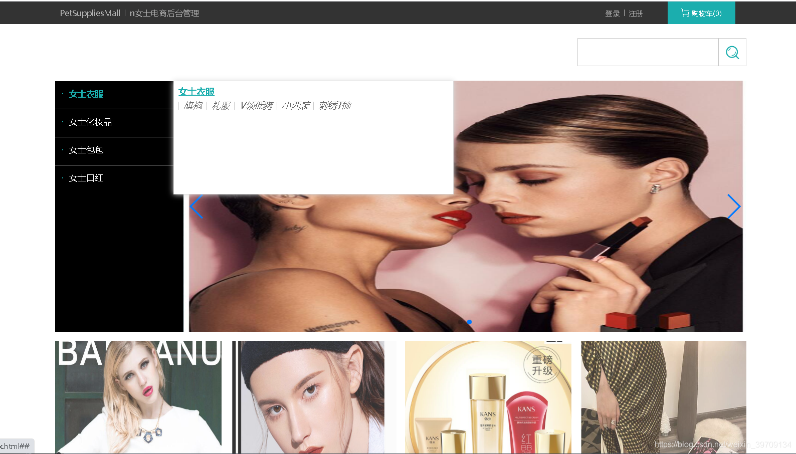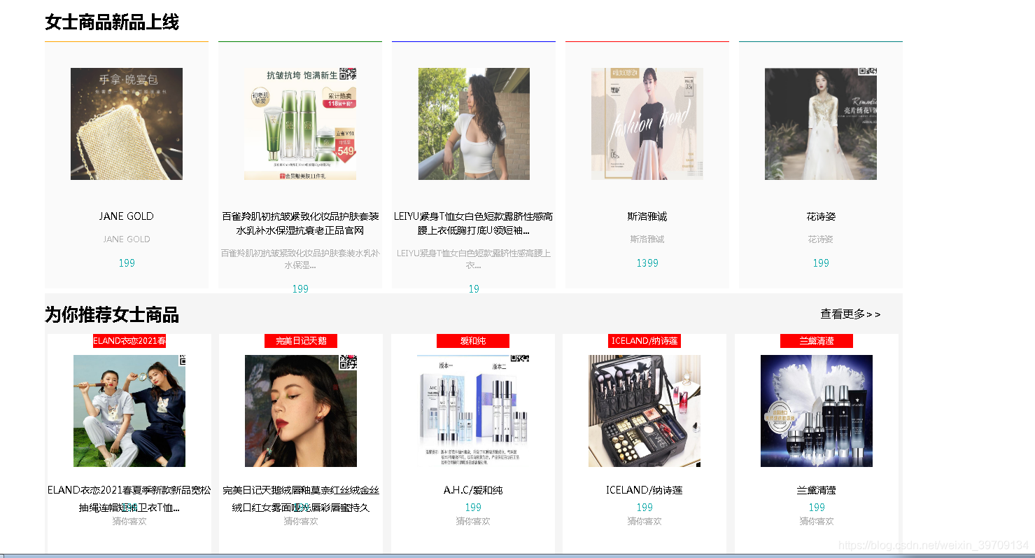 首页轮播图以及推荐女士商品浏览以及模糊查看和分类查看等操作:
