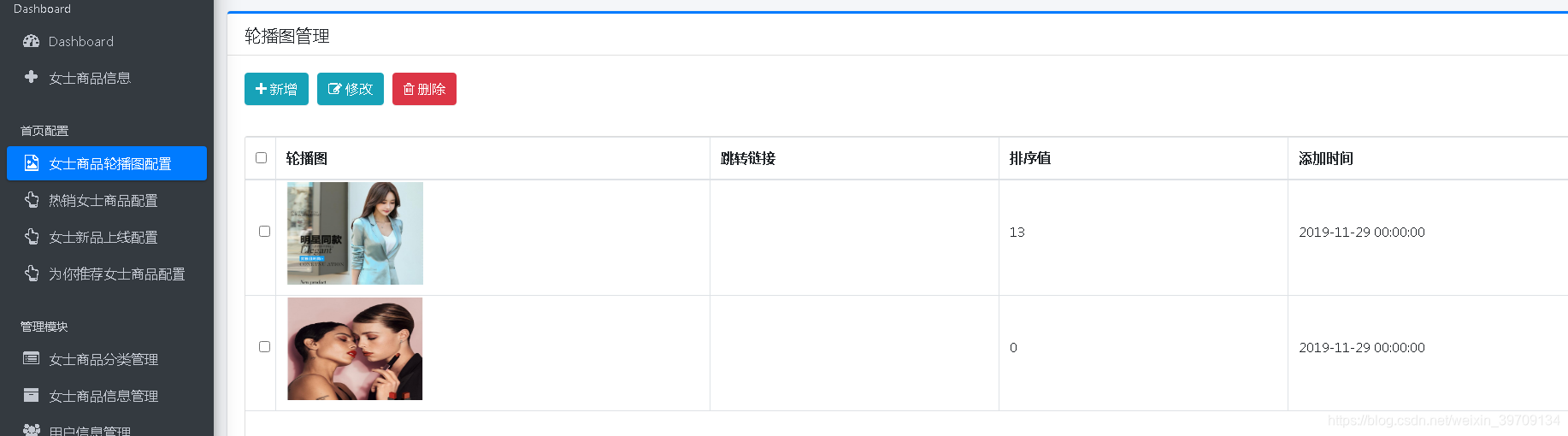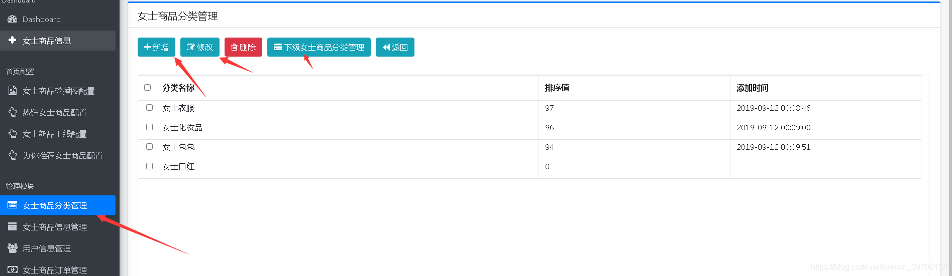 后台主要功能设计:每个模块都有列表查询、添加、修改。删除等操作
