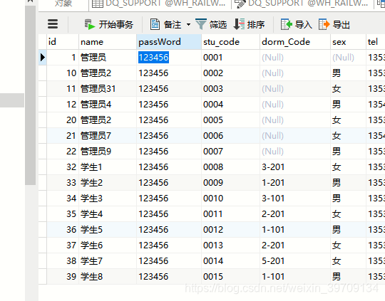 学生管理模块:显示管理员列表数据、以及添加学生信息和根据姓名、宿舍楼 查询信息 以及修改删除操作