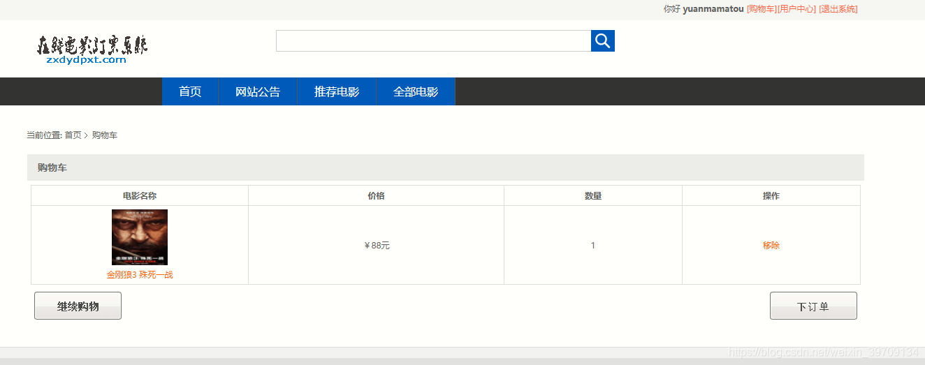 6.查看我的购物车以及从购物车移除影片信息