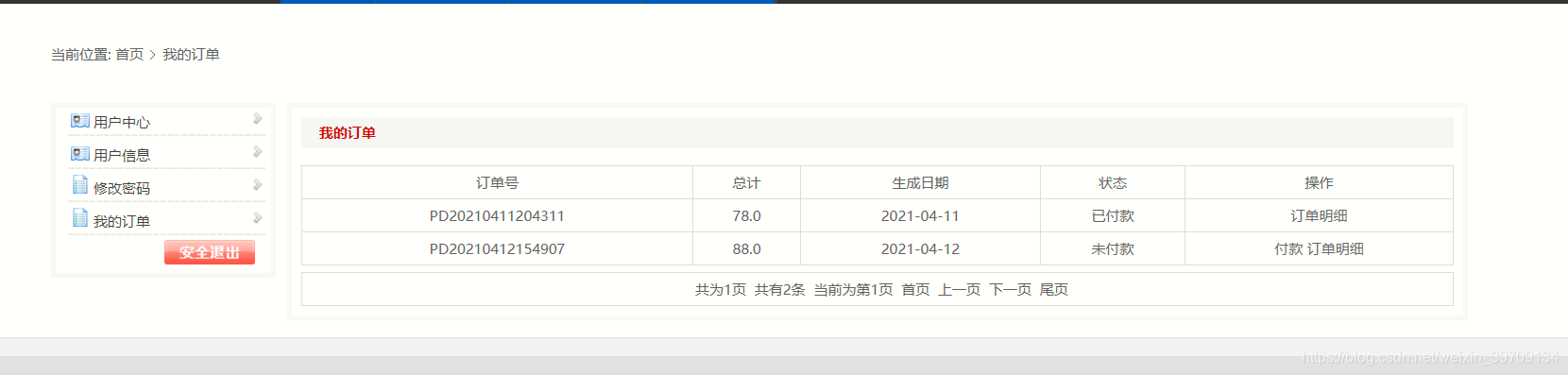 10查看我的订单以及退出操作