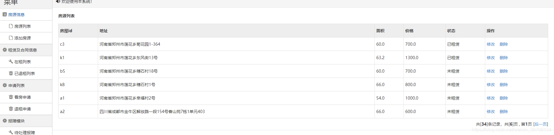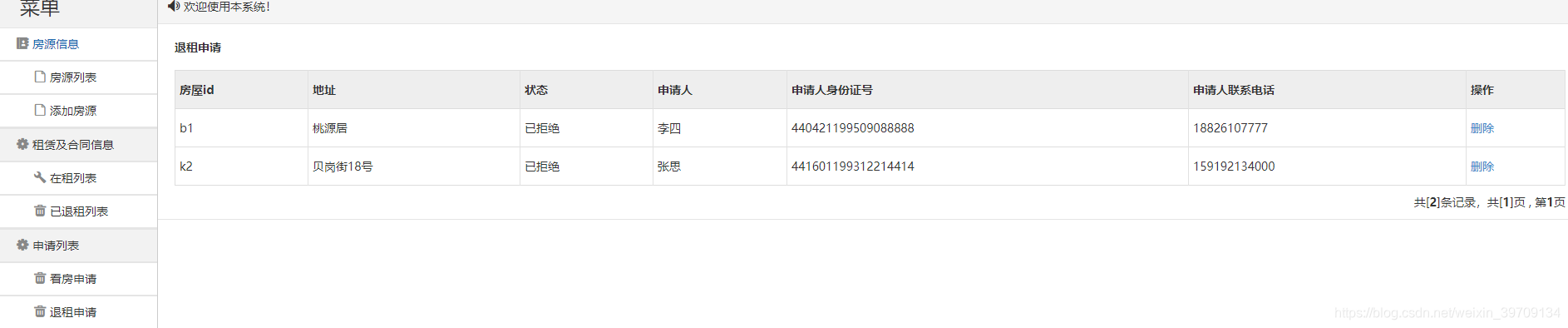 3.租赁合同管理以及在租房源和已退租房源信息管理