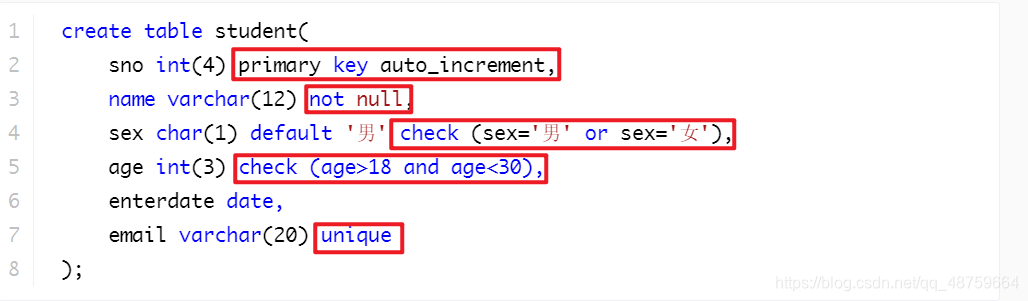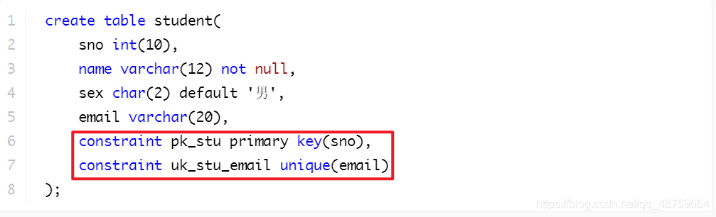 (2)列级约束:包含在列定义中,直接跟在该列的其它定义之后 ,用空格分隔;不必指定列名