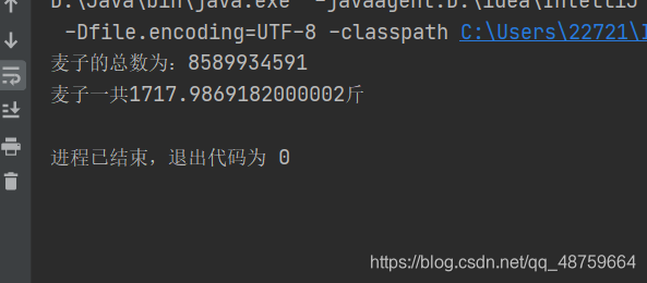 public class Test26 {public static void main(String[] args) {long sum = 1;long num = 1;for (int i = 1;i<=32;i++){num*=2;sum+=num;}System.out.println("麦子的总数为:"+sum);System.out.println("麦子一共"+sum*0.0001/1000*2+"斤");}