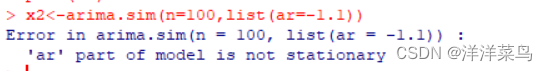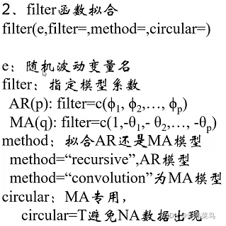 我们发现报错,报错提示,该不是平稳序列,所以我们应改为用filter 函数拟合,如下