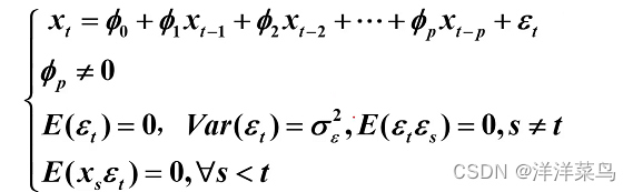如下结构的模型称为P阶自回归(autoregression)模型,简记为 AR(p)