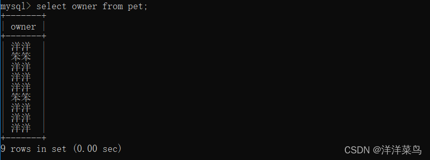 select owner from pet;返回: