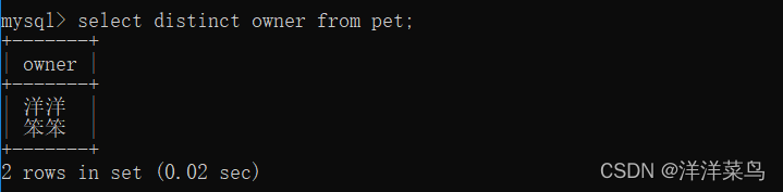select distinct owner from pet;返回: