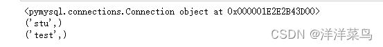 for i in mycursor:print(i)# # 关闭数据库