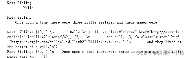 - find_all_previous()和find_previous():前者返回节点后所有符合条件的节点,后者返回第 一个符合条件的节点。