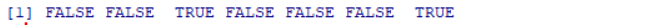 %in% 是比较特殊的比较,x %in% y 的运算把向量 y 看成集合,运算结果是一个逻辑型向量,第 i 个元素的值为 x 的第 i 元素是否属于 y 的逻辑型值。如