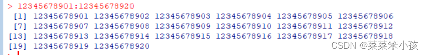 用 print() 函数显示向量或在命令行中显示向量时,每行显示的行首会有方括号和数字序号,代表该行显示的第一个向量元素的下标。如