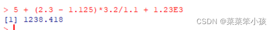 输出前面的方括号和序号 1 是在输出有多个值时提供的提示性序号,只有单个值时为了统一起见也显 示出来了。这里 1.23E3 是科学记数法,表示 1.23 × 103。用星号 * 表示乘法,用正斜杠/表示除法。