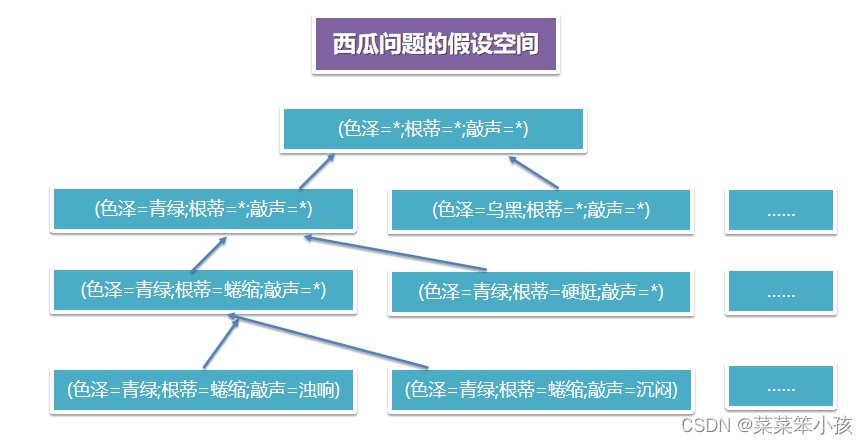 搜索目标:找到与训练集“匹配”的假设,即能够将训练集中的瓜判断正确的假设。