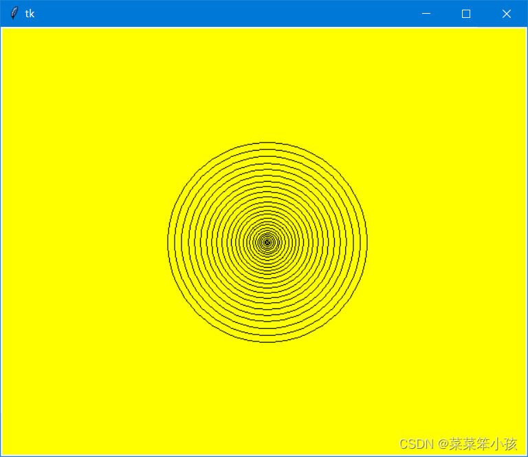 for i in range(0,26):canvas.create_oval(310 - k,250 - k,310 + k,250 + k, width=1)k += jj += 0.3mainloop()