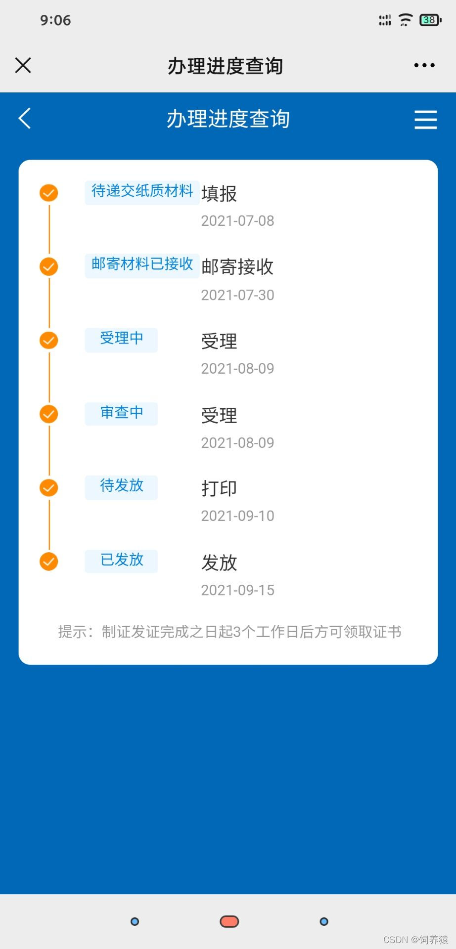 我自己写代码啥的大概画了一个来月,从申请到下证大概两个月(和工作日有关,建议避开法定假期多的时间点),还有就是从你填报到接收邮寄材料是有一个固定的时间点的,我当时不知道,发了一个特快,企图早收早拿证,导致成本又多了一点。