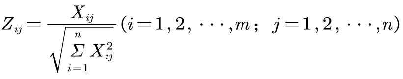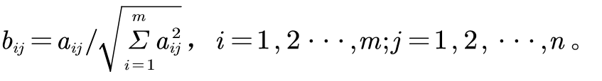 用向量规划化的方法求得规范决策矩阵。设多属性决策问题的决策矩阵,规范化决策矩阵