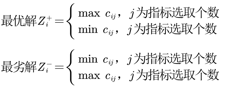 用理想解法求解多属性决策问题的概念简单,只要在属性空间定义适当的距离测度就能计算备选方案与理想解的距离。TOPSIS法所用的是欧几里得距离。至于既用最优解又用最劣解是因为在仅仅使用最优解时可能会出现某两个备选方案与最优解的距离相同的情况,为了区分这两个方案的优劣,引入最劣解并计算这两个方案与最劣解的距离,与最优解的距离相同的方案离最劣解远者为优。