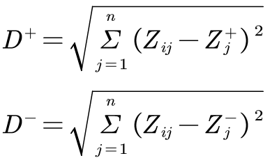 (5)计算各方案与正负理想解间的距离