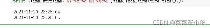 import timeprint (time.strftime('%Y-%m-%d %H:%M:%S',time.localtime(time.time())))# 暂停一秒