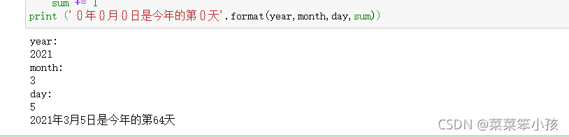 print ('{}年{}月{}日是今年的第{}天'.format(year,month,day,sum))