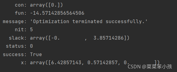 重点关注的就是fun和最后一行了,fun是最优值,最后一行是每个x的最优解。