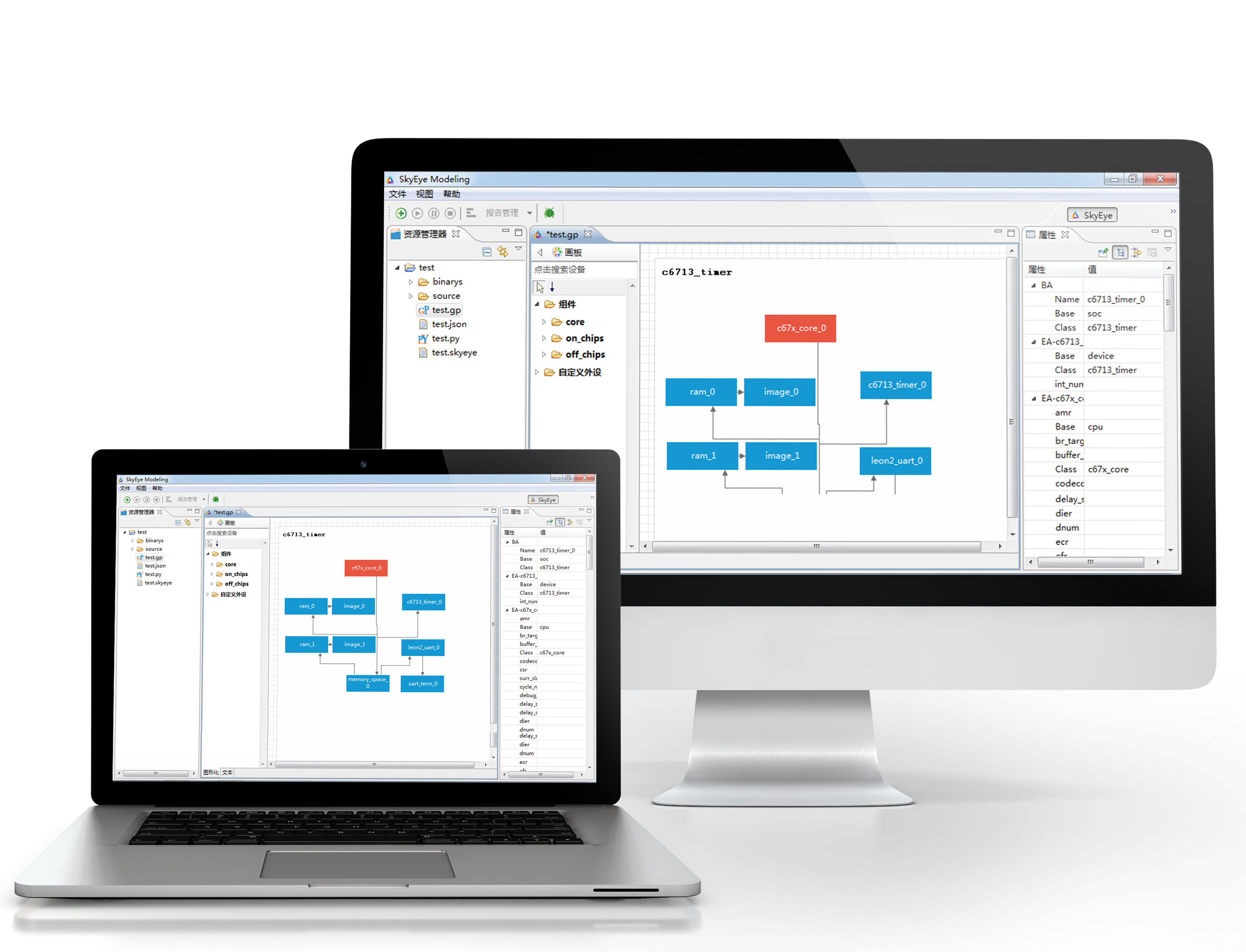 SkyEye可以轻松地通过图形化拖拽的方式搭建出多种嵌入式目标系统,尝试不同的硬件设置、软件应用程序和平台配置,如修改内容大小、改变处理器运行速度等来测试软件的行为,以验证程序的正确性。