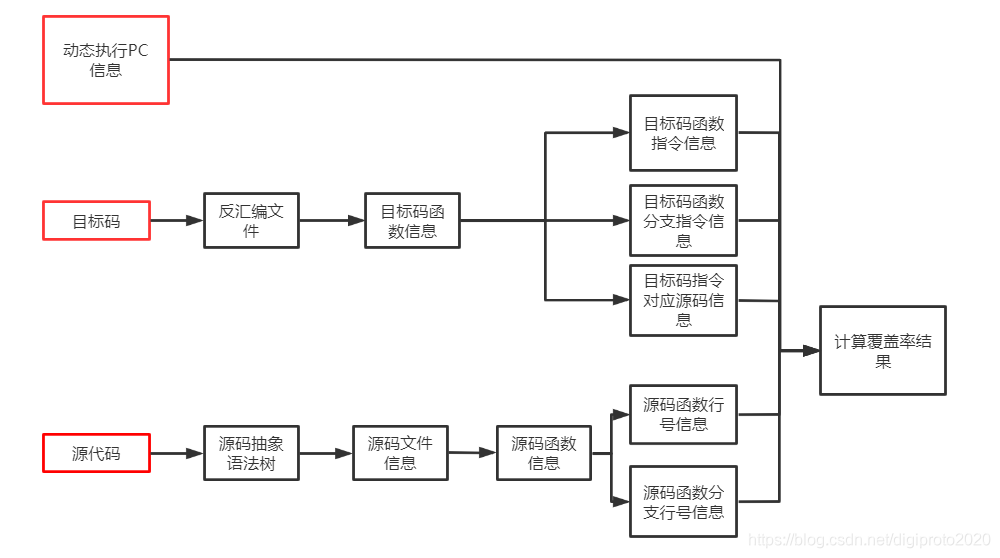 零插桩技术主要需要分析嵌入式软件的目标码及源代码,通过提取目标码及源代码中的特征信息,获取函数信息,及函数中的分支信息。整体流程如下: