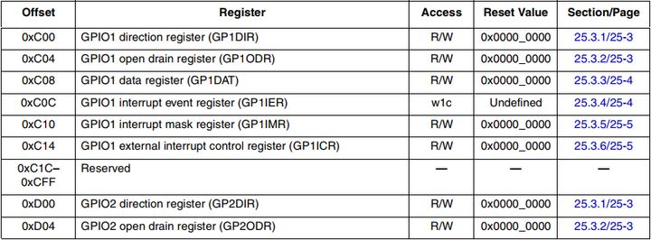下图是MPC8378官方手册中关于GPIO的所有寄存器: