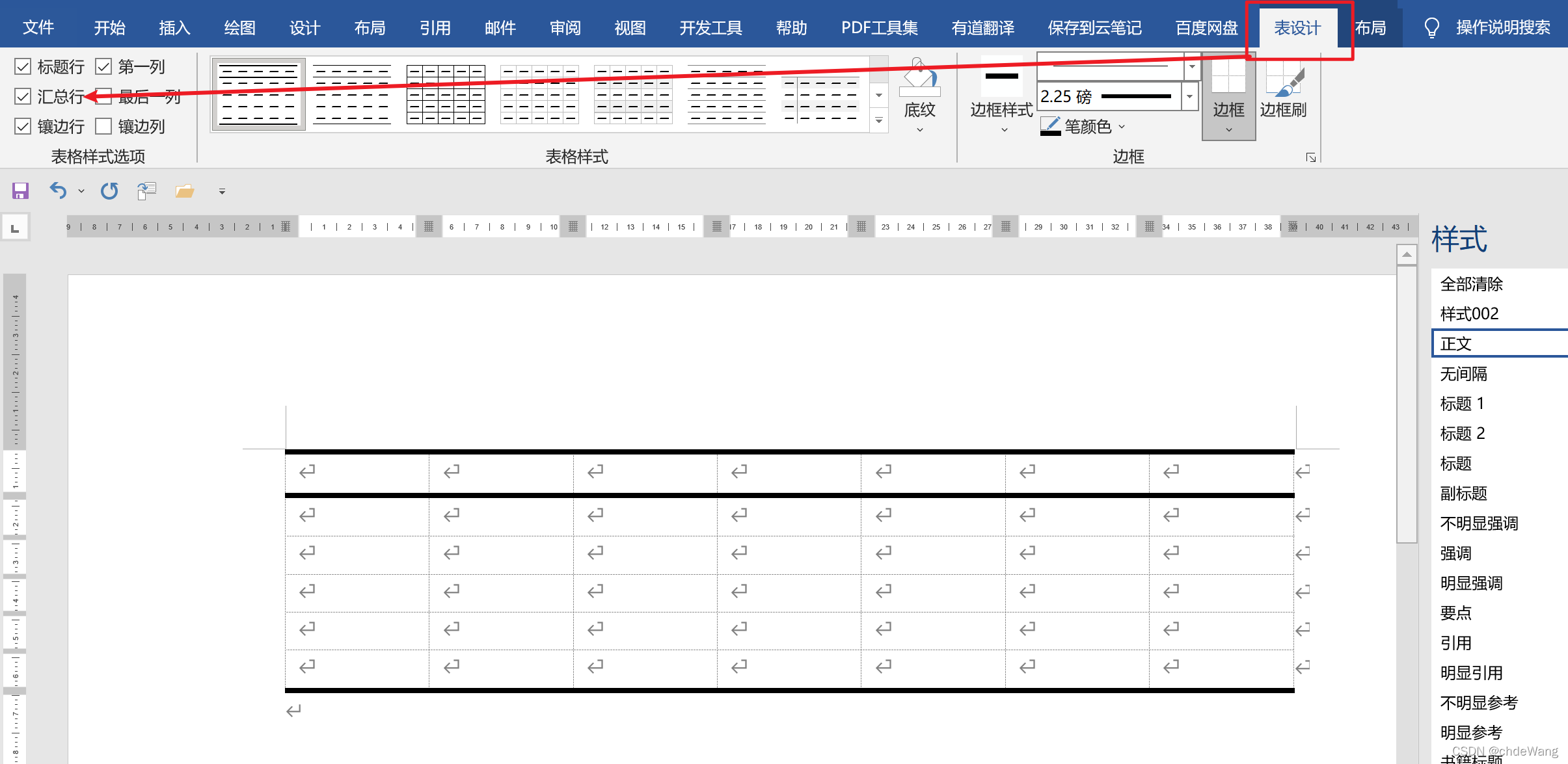 单独设置标题行,汇总行等格式即可。表格样式会显示在-设计-样式-表格样式中。
