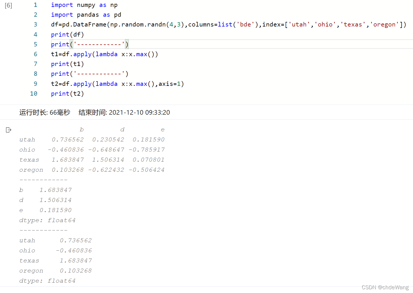 df=pd.DataFrame(np.random.randn(4,3),columns=list('bde'),index=['utah','ohio','texas','oregon'])