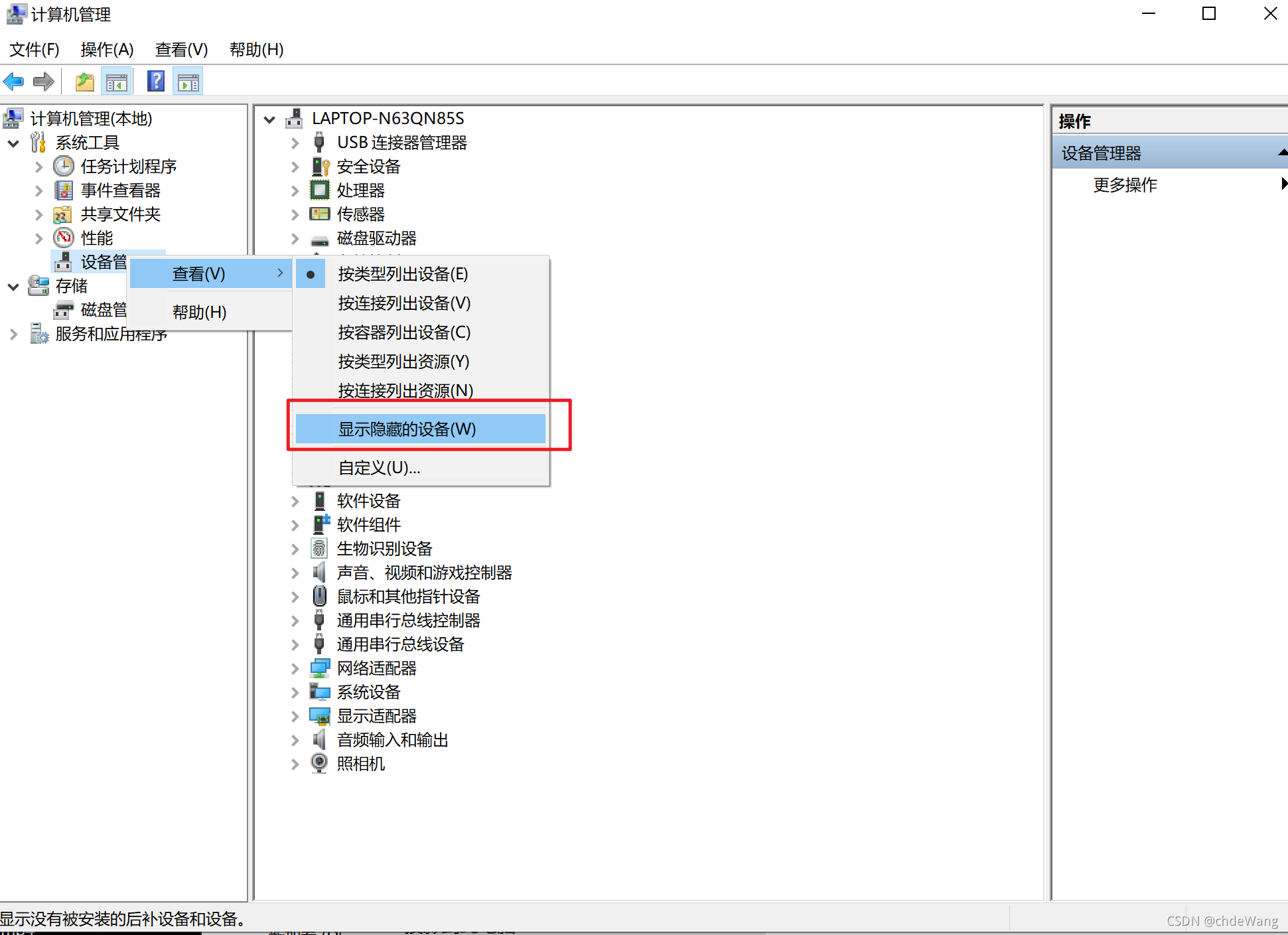 竟然是在设备管理器中-右击-显示隐藏的设备类型。