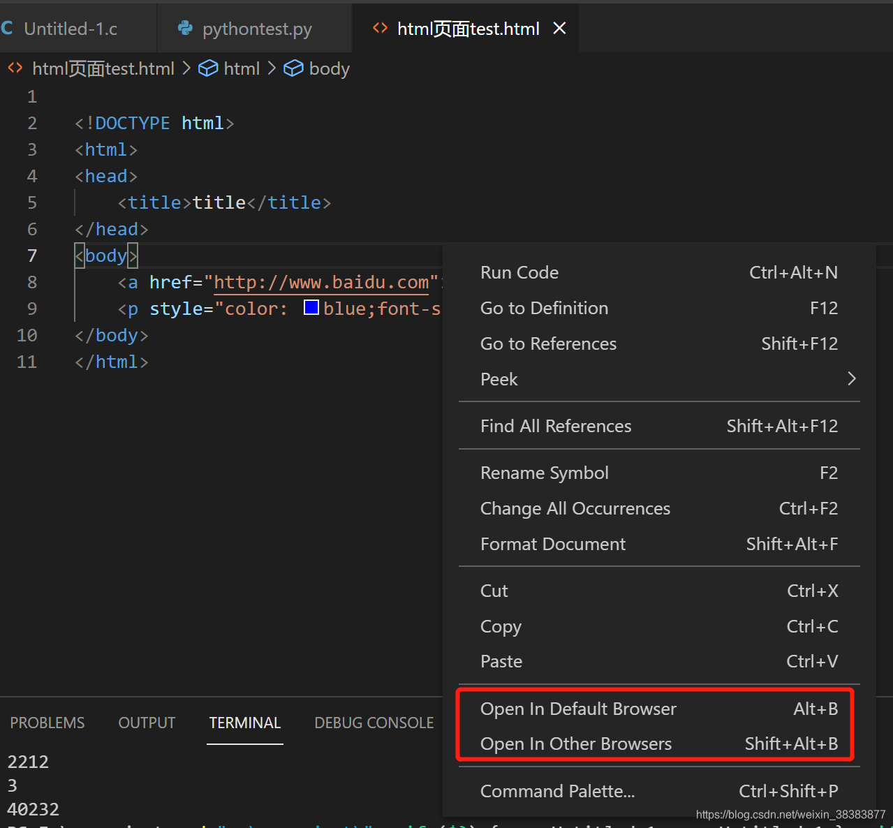 下载:open in browser即可,当编辑好html文件后,右击文件,选择:open in borwser。