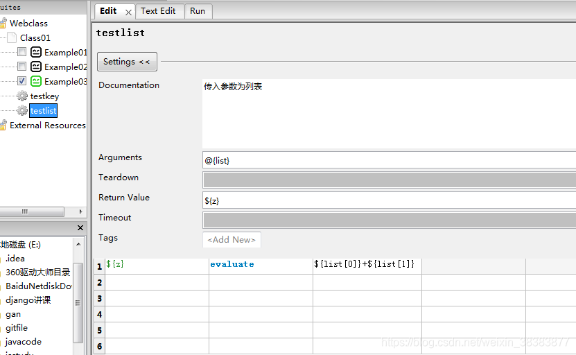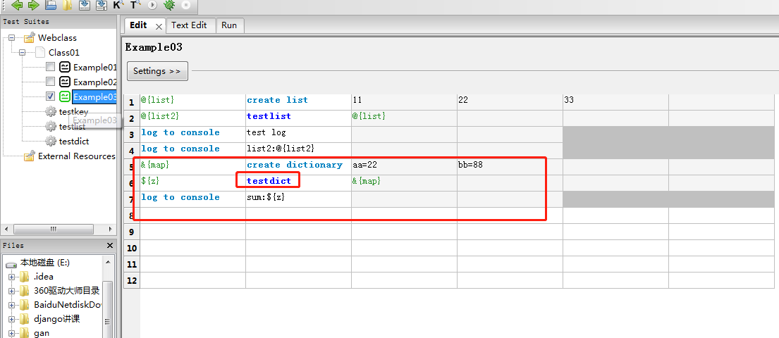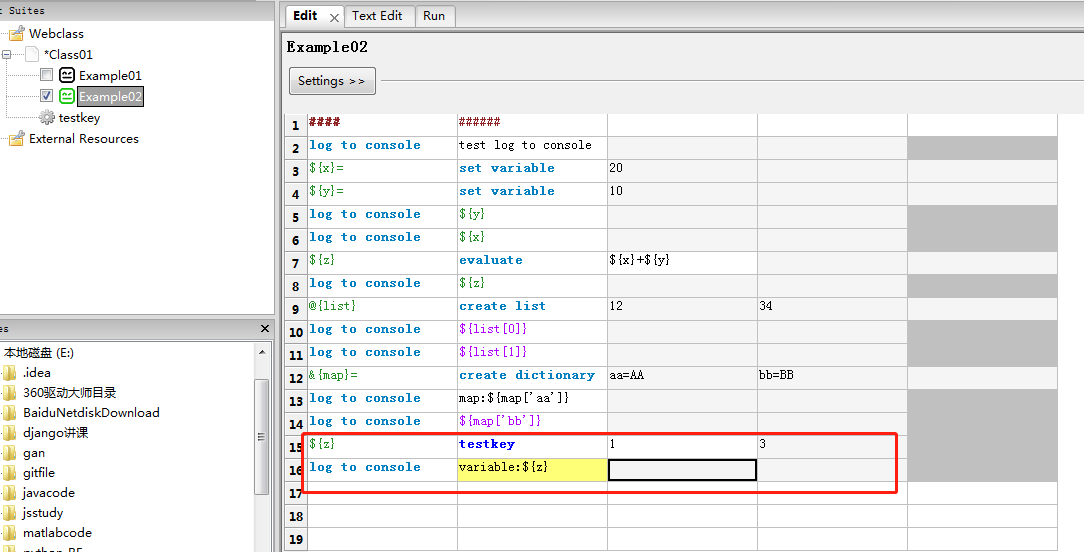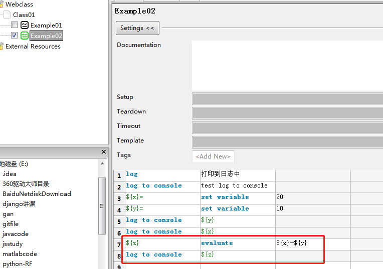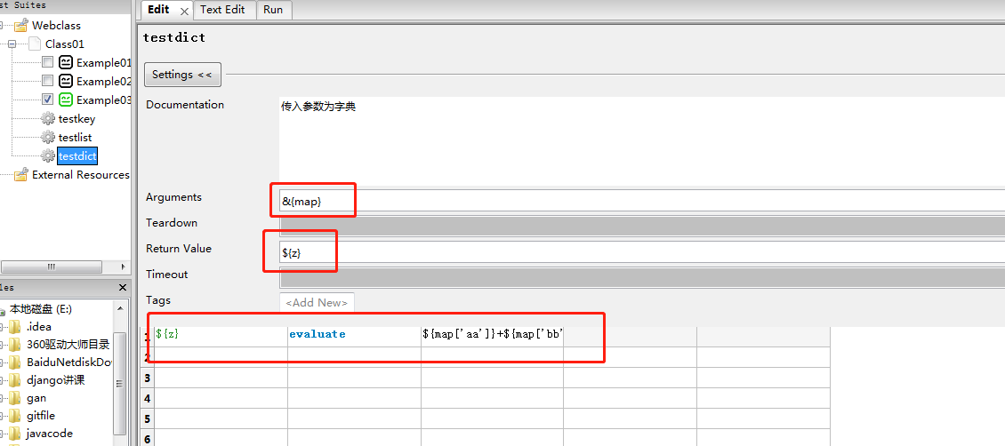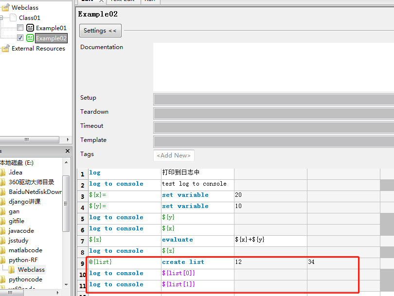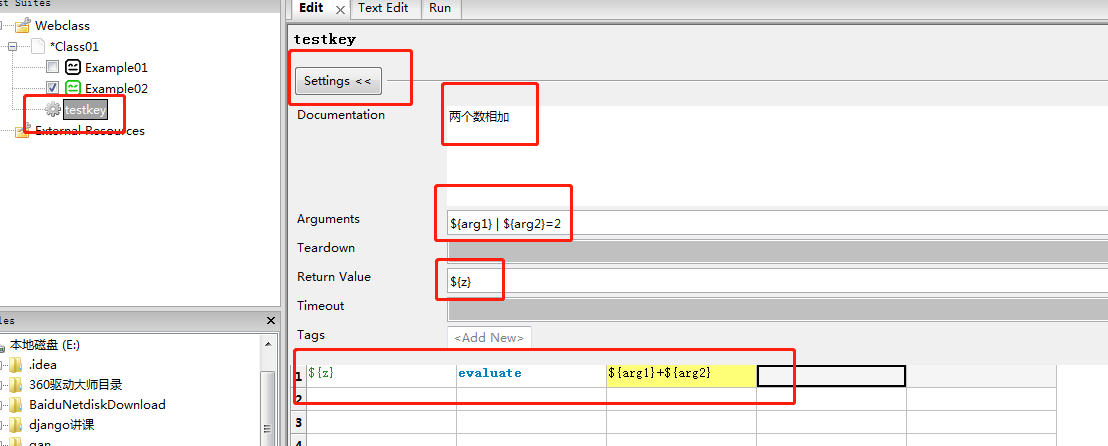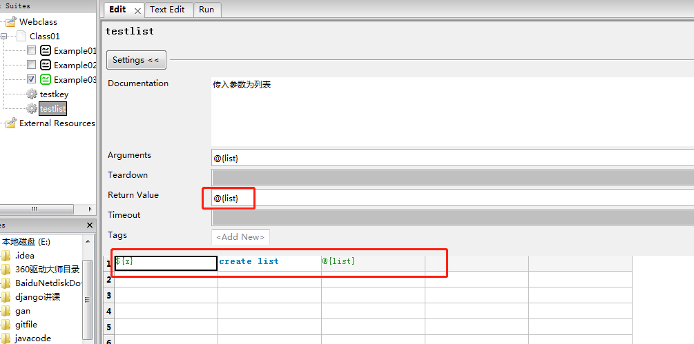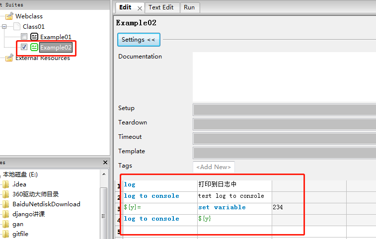 Template:测试模板,可以指定某个关键字为这个测试套件下所有TestCase的模板,这样所有的TestCase就只需要设置这个关键字的传入参数即可。