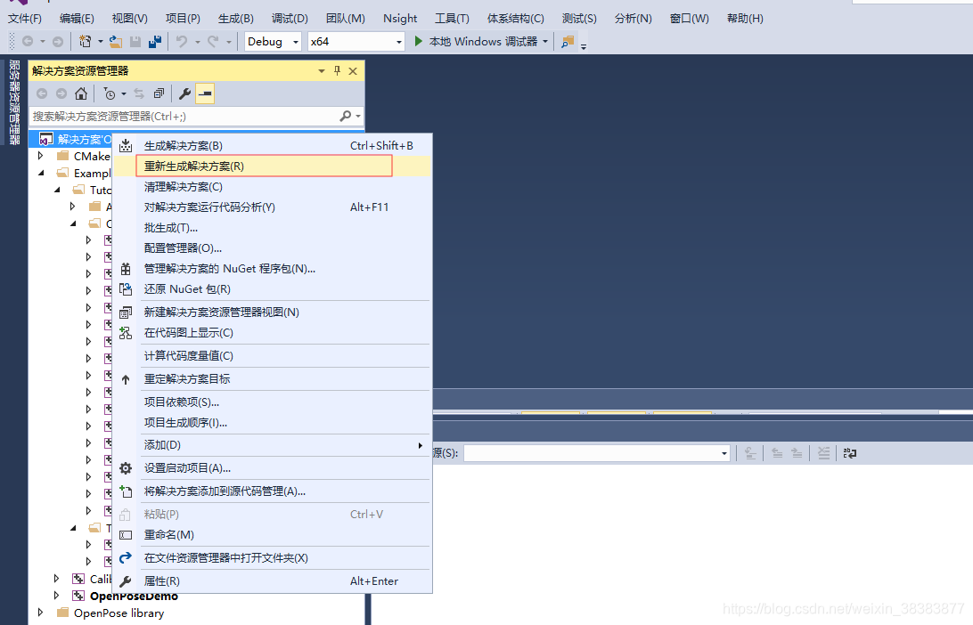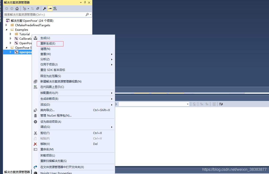 (2)首先将openpose设置为启动项目,然后点击重新生成