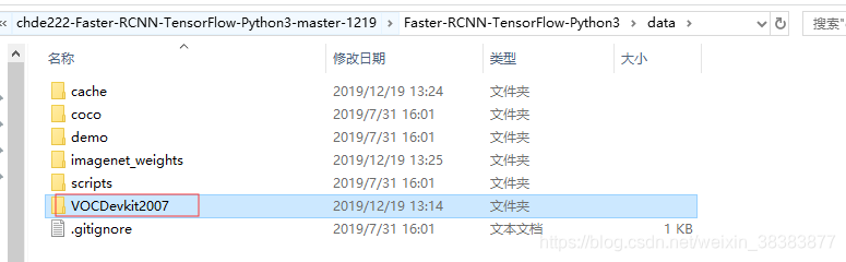 下载文件后,将 VOCtrainval_06-Nov-2007.tar 解压后的文件夹VOC2007放在data/VOCDevkit2007/ 路径下。