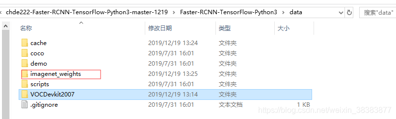下载后将文件重命名为:vgg16.ckpt 然后在data下建立imagenet_weights文件夹,将vgg16.ckpt放入