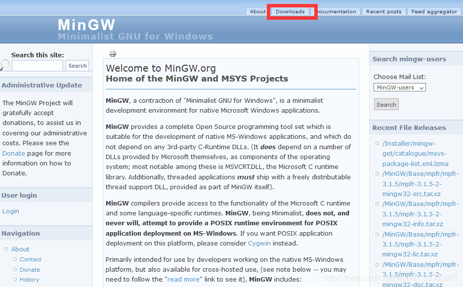 1、下载MinGWMinGW官网下载:http://www.mingw.org ,点击右上角Downloads