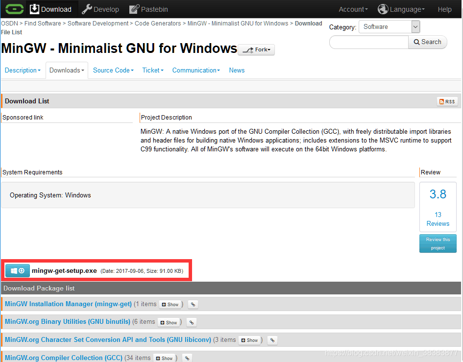 点击下载 mingw-get-setup.exe