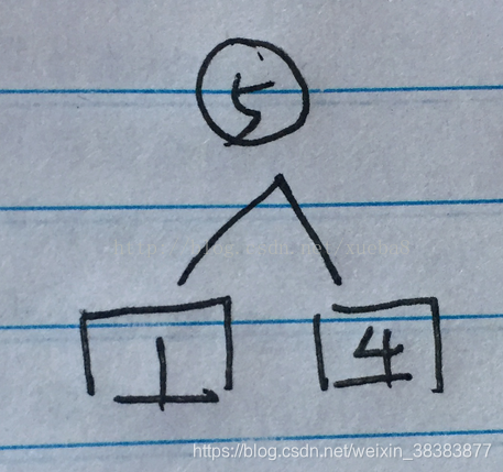 3、用一个类似于树杈的“树枝”连接上两个最小的数。在顶点处计算出这两个数字的和 并写在上面。然后再比较剩下的数字和这个和的大小,再取出两个最小的数字进行排列
