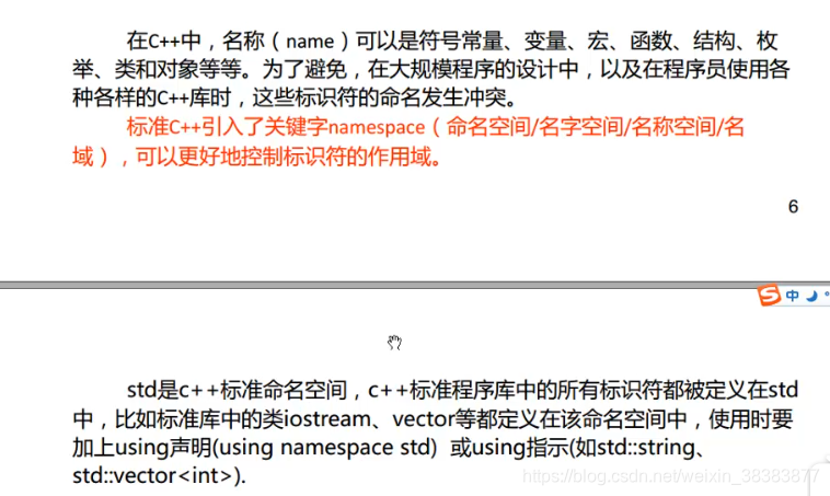 所谓namespace,是指标识符的各种可见范围。C++标准程序库中的所 有标识符都被定义于一个名为std的namespace中。