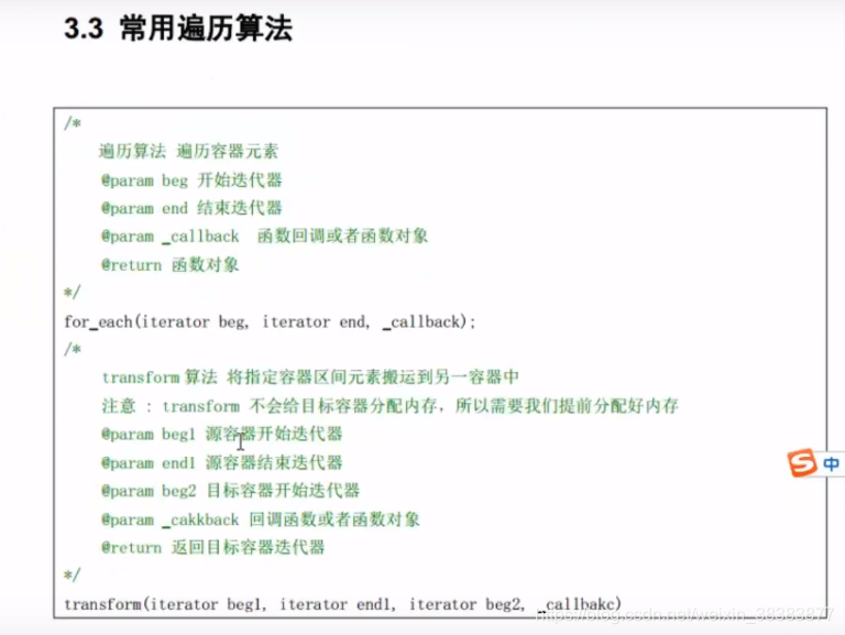 void test01() {vector<int> v1, v2;//v2.reserve(100);  错误/*v2.resize(100);*/for (int i = 0; i < 10; i++) {v1.push_back(i);}v2.resize(v1.size()); transform(v1.begin(), v1.end(), v2.begin(), PrintVector());for_each(v2.begin(), v2.end(), MyPrint);