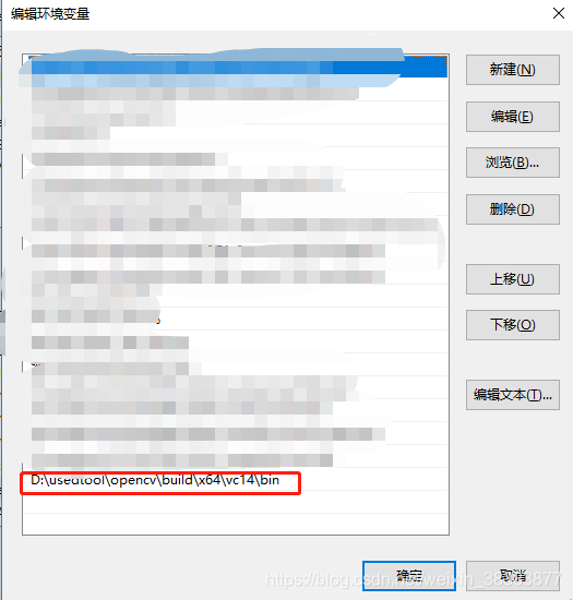 右键“我的电脑---属性---高级系统设置---环境变量,在下方“环境变量”里找到“Path”,进入编辑; 添加”…opencv\build\x64\vc14\bin”,如图所示: