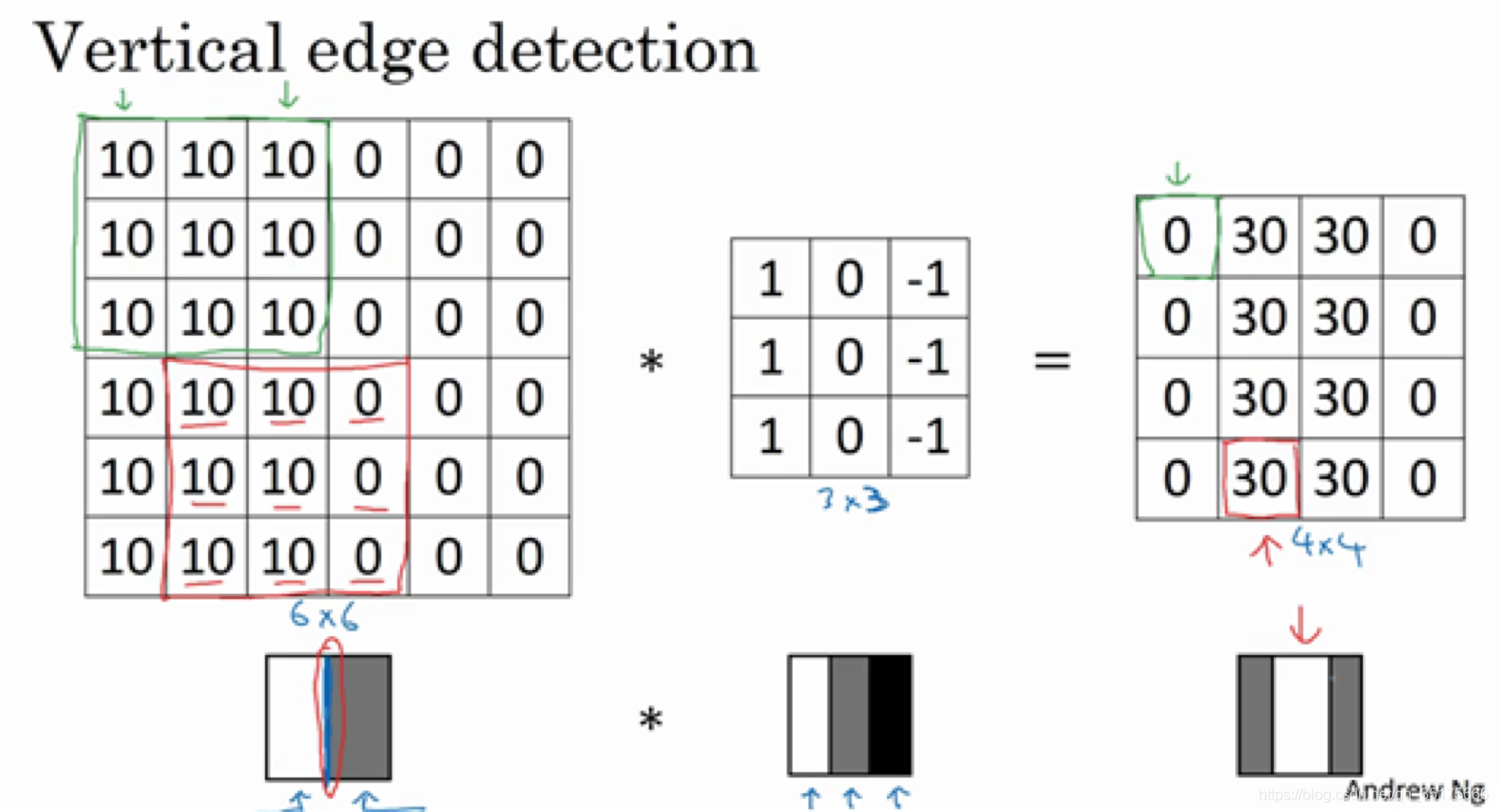 下图的卷积核(kernel 或称作fielter)可以检测竖直的线。